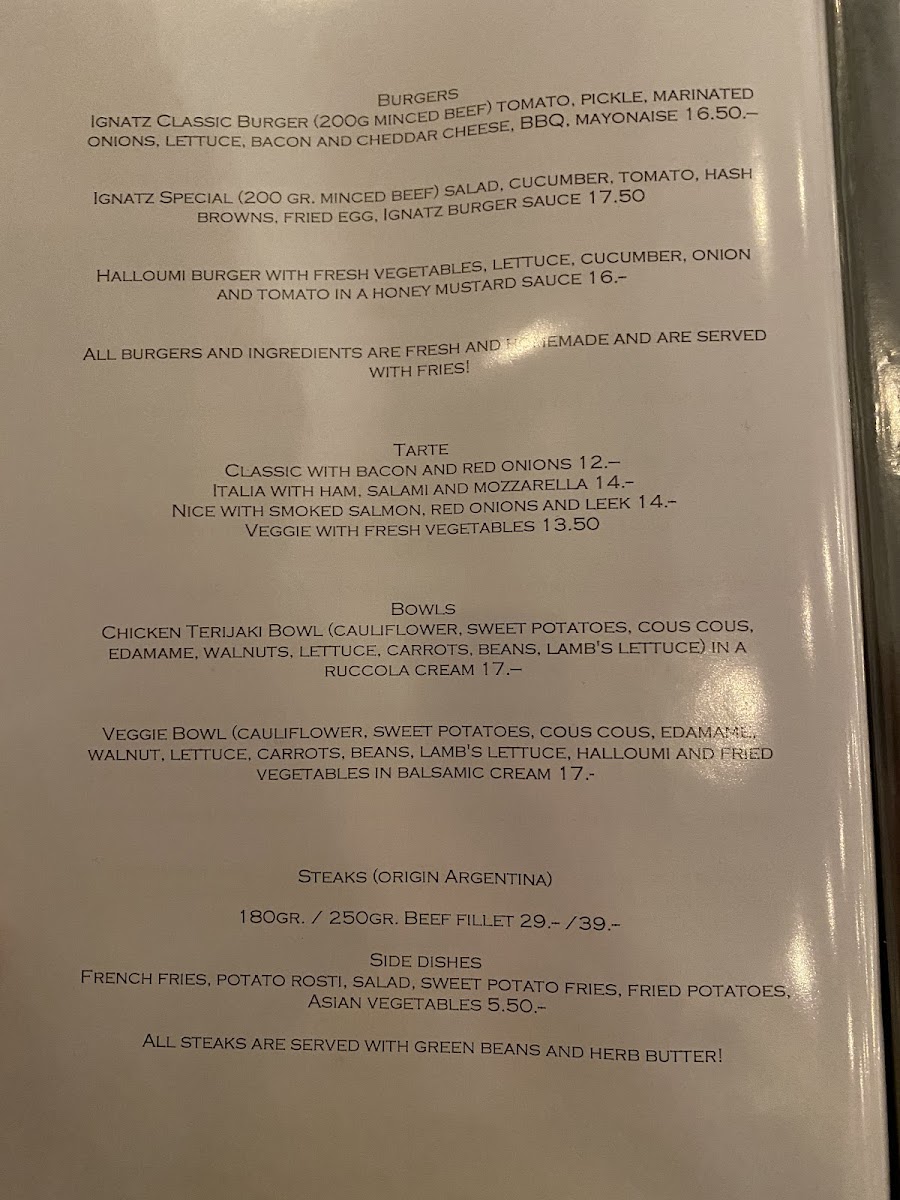 The menu at Restaurant Ignatz is well-rounded, catering to a wide range of tastes with a focus on quality and flavor. Whether you're in the mood for something classic or a bit more adventurous, there's a dish here to satisfy every palate.